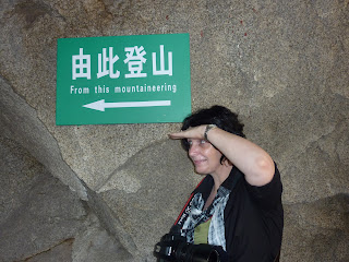 This morning up early again! No sleep ins on this holiday. We had a long drive ahead of us as the road was being repaired and we were told it would take 4 hours instead of 1 (actually took 3!) but it was a good trip and we enjoyed it, when we had our eyes open! I am sure you aren't supposed to overtake around a bed, three abreast but Mr E was determined to do it. (Some would say that I should be used to driving like that!) Mt Huashan was fantastic, we walked and climbed and walked. Loved it, even managed to survive the chair lift.