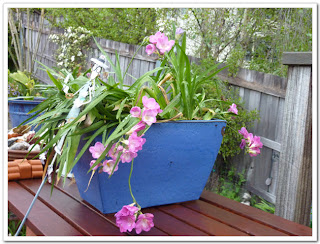 Couldn't resist snapping this pot of fresias, totally neglected in my garden but flowering and looking beautiful so promoted from the back fence to the deck!